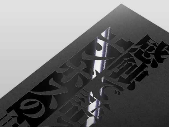 2種類のニスを使用する事によって印刷表面がザラザラとした梨地となり、通常の印刷物には無い製品が仕上がります。触れた感触で感覚に訴え、光の感じで視覚にも訴える事ができます。