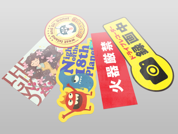 A4~B4サイズの大きめのステッカーも作成します。弱粘着を使用した窓用ステッカーなども依頼があります。